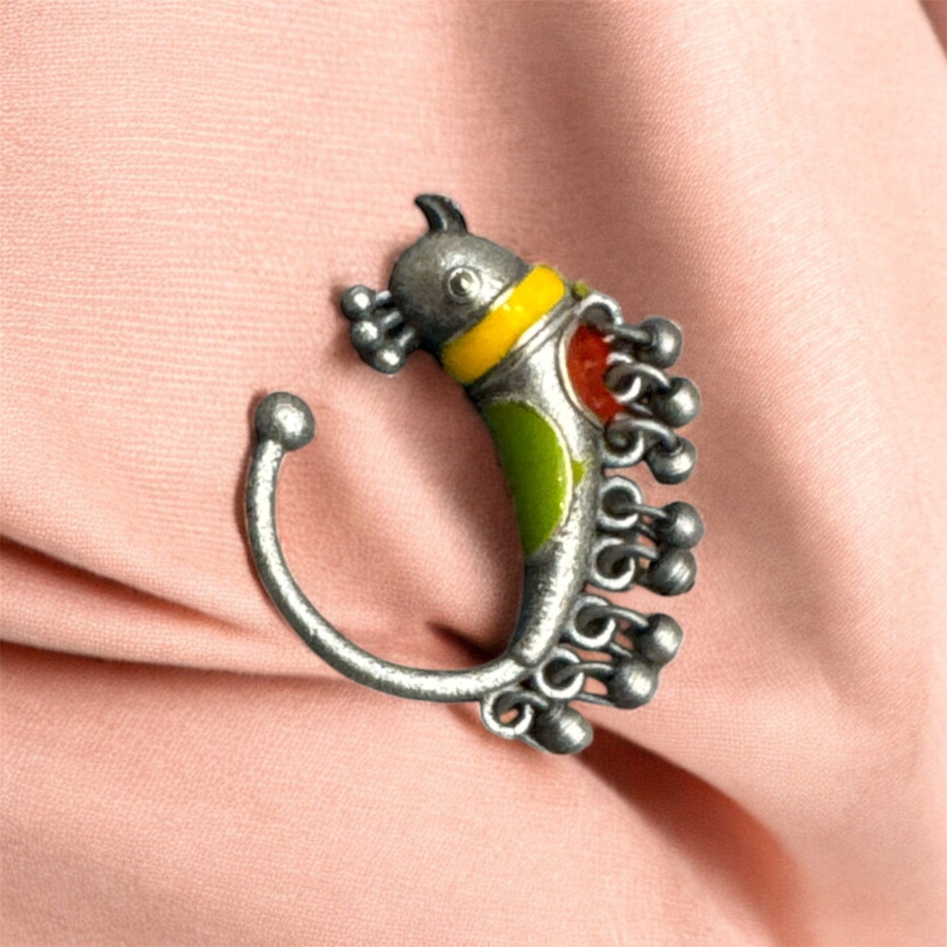 Elevate your style with our Oxidized Parrot-Shaped Nosepin, featuring a charming parrot design with vibrant color accents in green, red, and yellow. Crafted from high-quality oxidized metal, this nosepin blends vintage rustic charm with playful elegance, perfect for everyday wear or special occasions. Lightweight and comfortable, it’s a must-have for those embracing 2025’s nature-inspired jewelry trends. Make a bold statement with this unique, artisanal accessory.